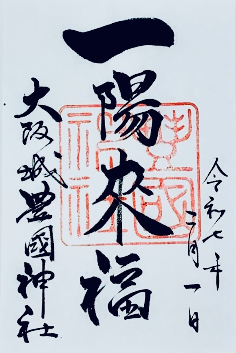 右端に参拝日、左端に「大阪城 豊国神社」、そして中央に大きく「一陽来復」と墨書きされた御朱印。